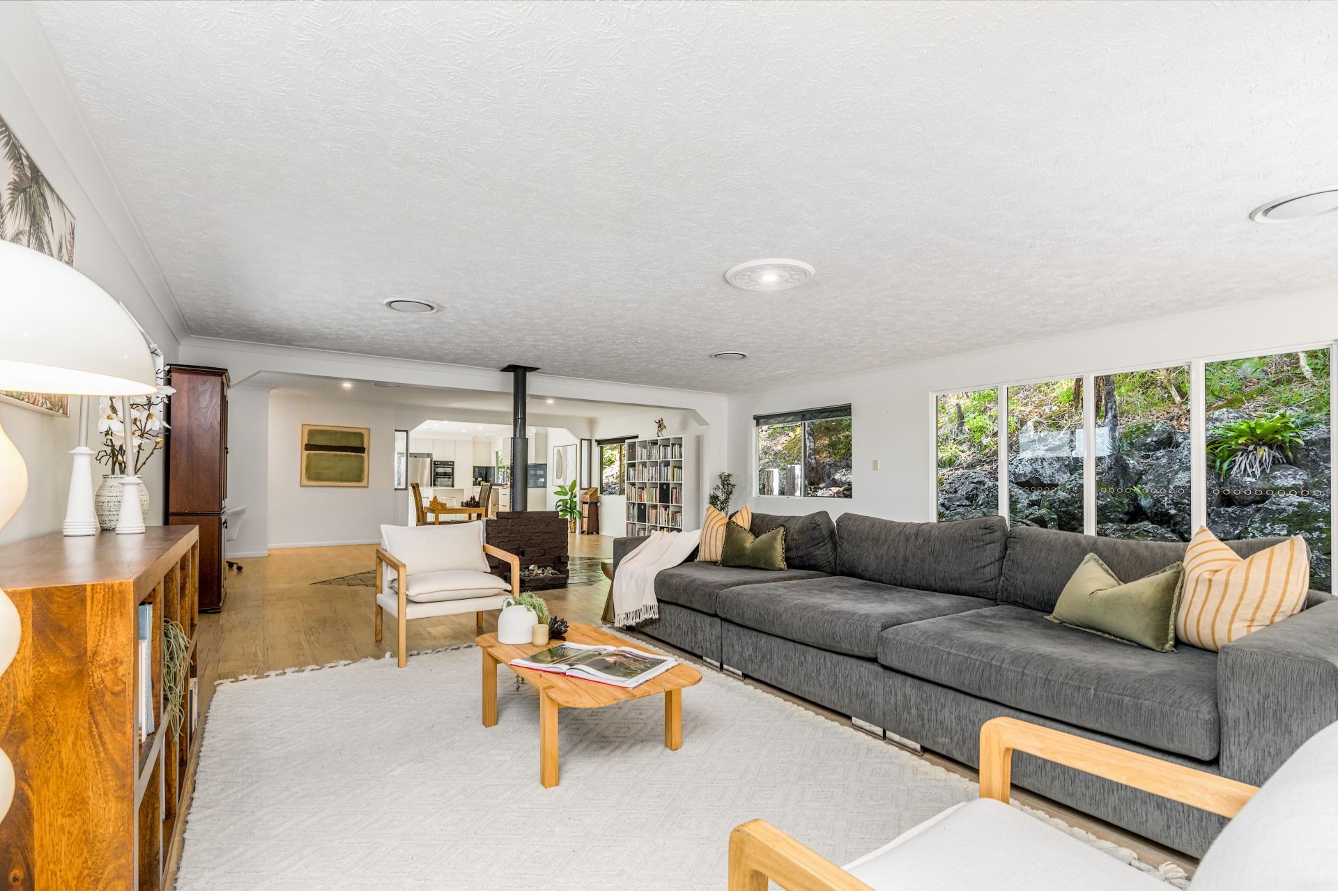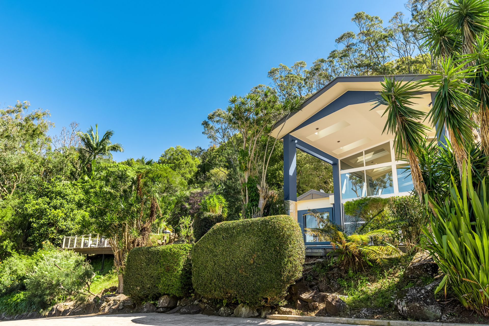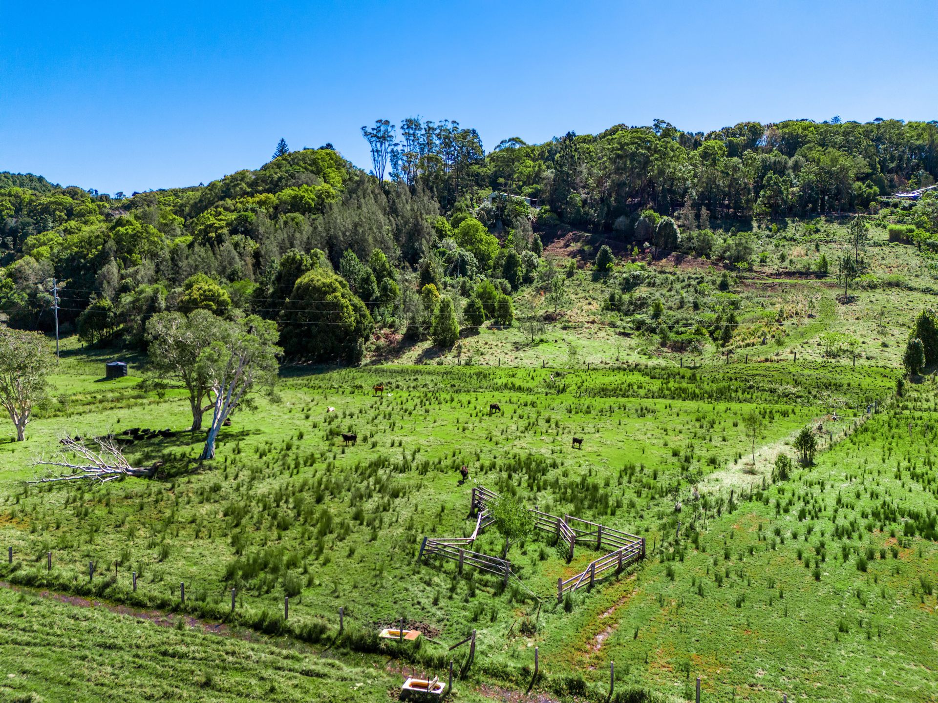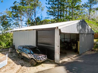 A variety of fruit trees-mango, avocado, banana and citrus-thrive on the land, along with established veggie gardens, a chicken coop and a dam. Native wildlife, including koalas, visit regularly, adding to the charm of acreage living.