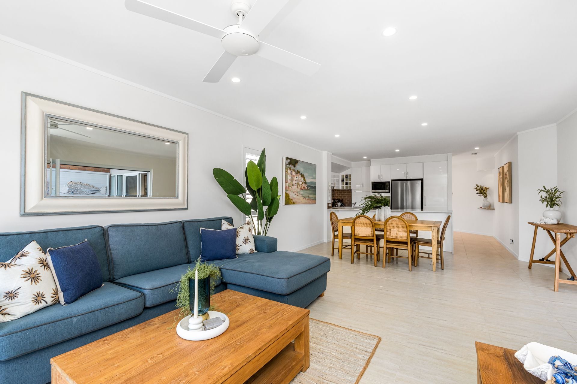 - Open-plan kitchen, living and dining filled with natural light.