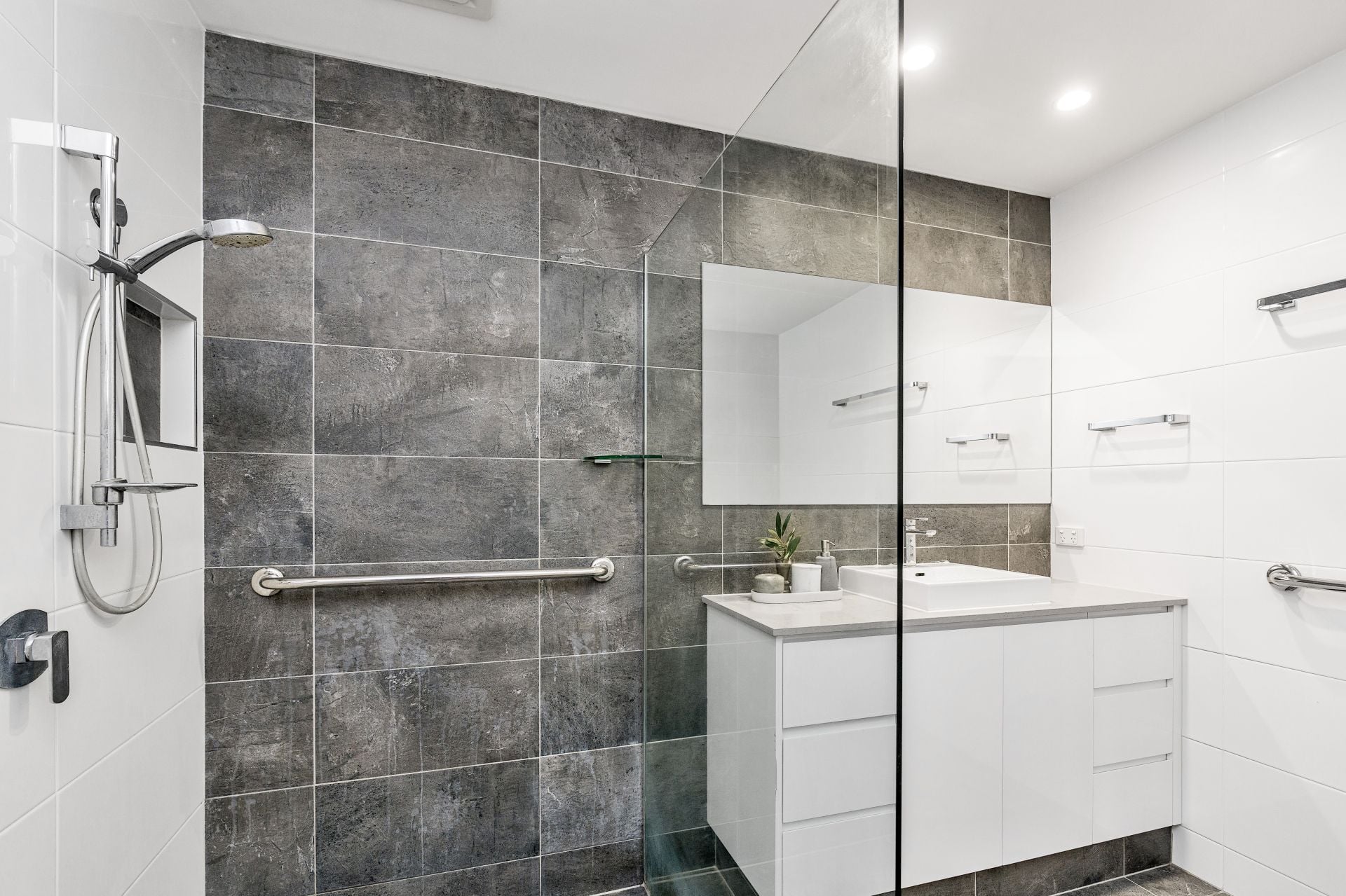 - Guest bedroom with mirrored robe and neutral finishes.