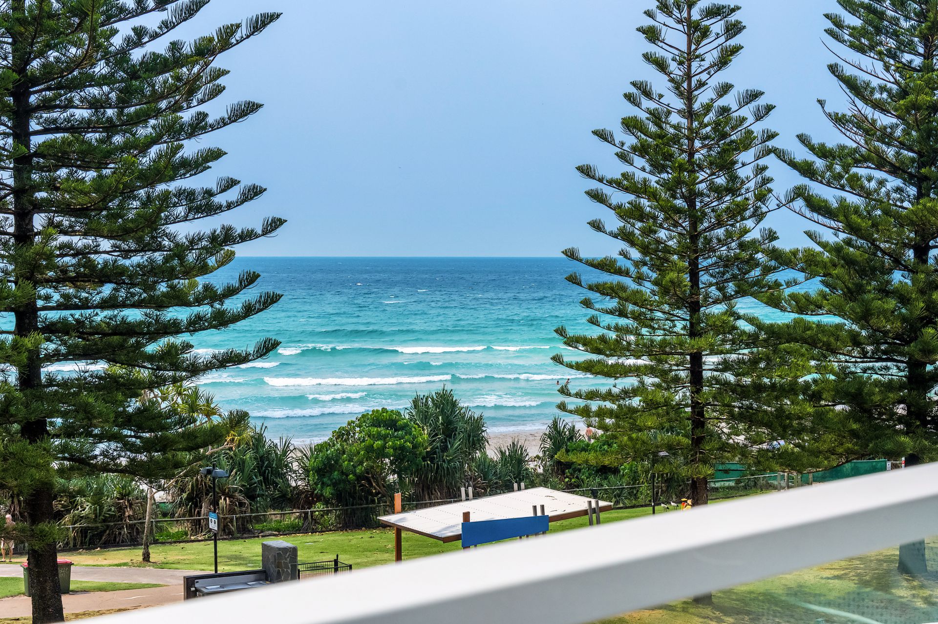 - Directly across the road from Rainbow Bay Beach with ocean and pine tree views